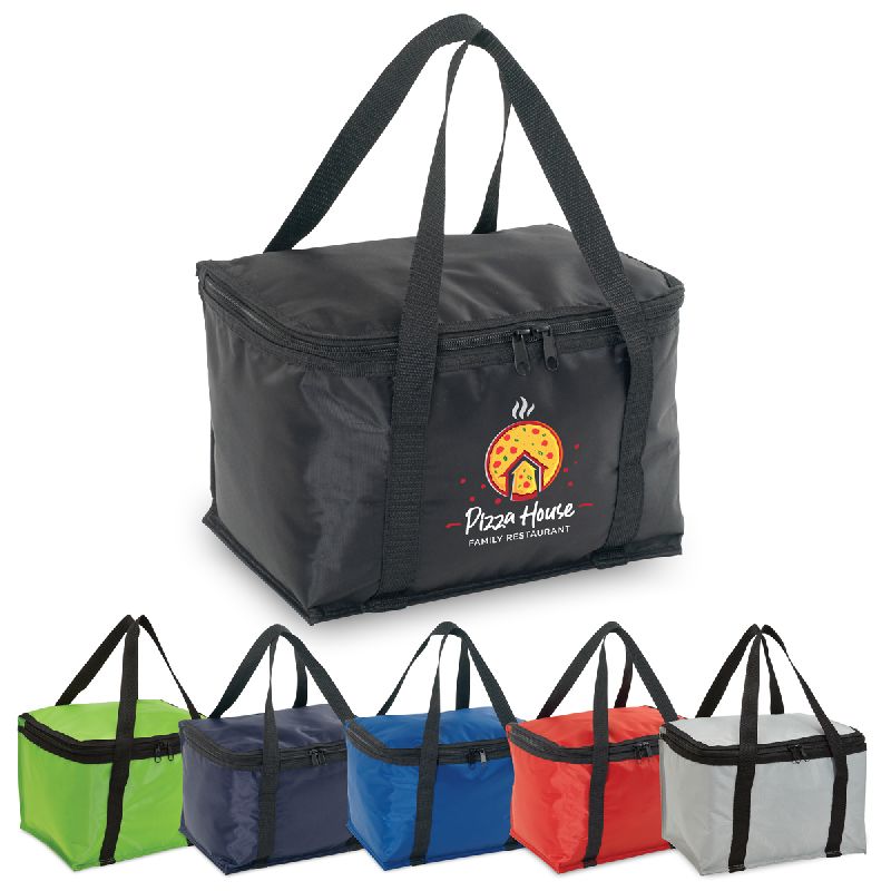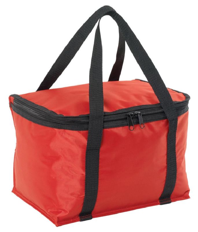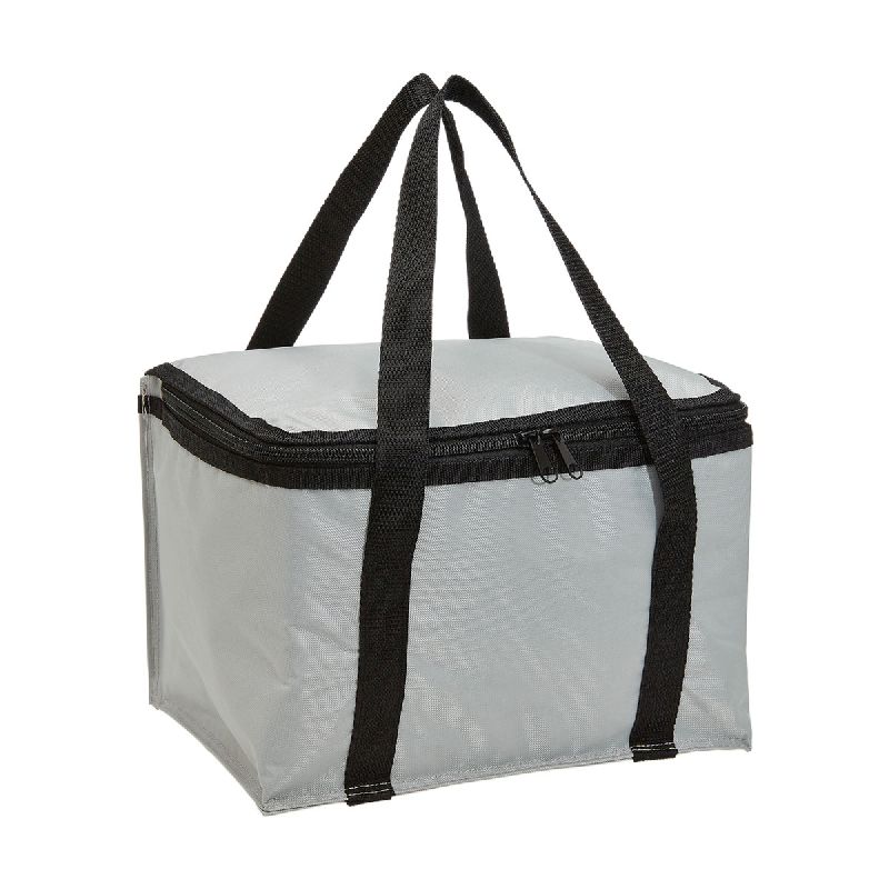 420D polyester with PVC backing. Insulated cooler. Long webbing carry handles. Double zippered lid.