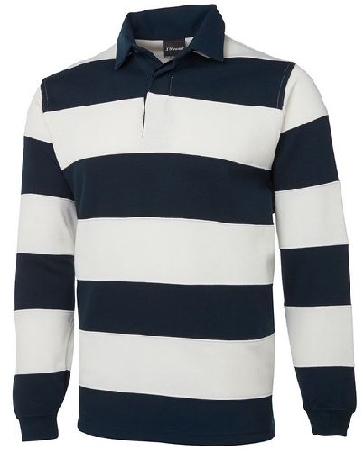 65% Polyester for durability, and 35% Cotton for comfort 350gsm rugby knit fabric concealed 3-button placket Internal twill back neck dome Straight hem with side splits Rib cuffs 6/7XL available in Navy/White only Classic Fit